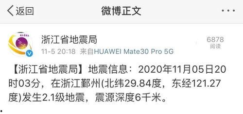 最近宁波的小伙伴们可是炸开了锅呢!原因无他,一场地震的“小插曲”让整个城市都紧张了起来。这不,我就来给你爆料一下宁波地震的最新消息,让你一探究竟!